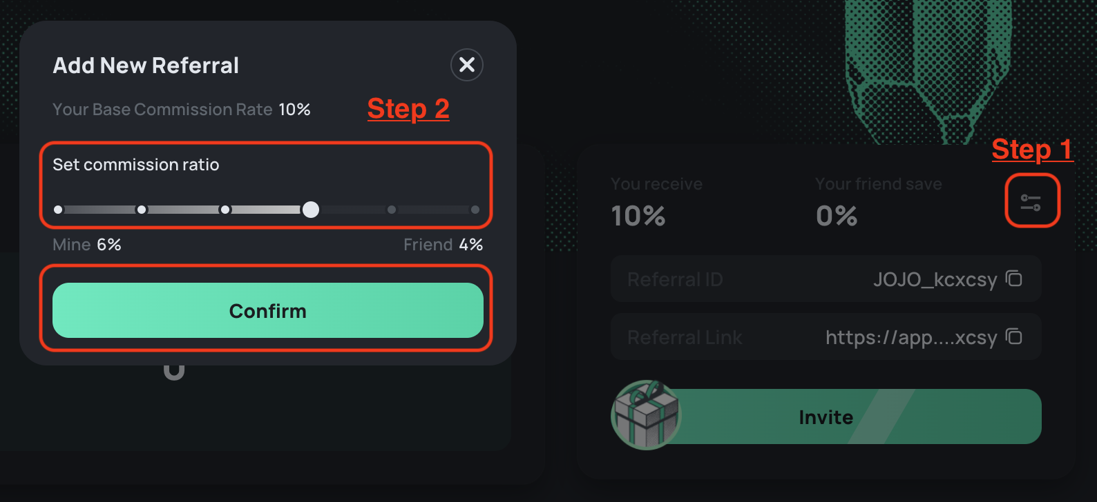 ### Adjust referral percentage&#x20;